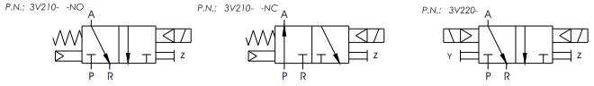 3V2-10-06-AC220V-DIN-LED | EV 3/2 SIMPLE EF. NC G1/8″ ø=14mm 220VAC |